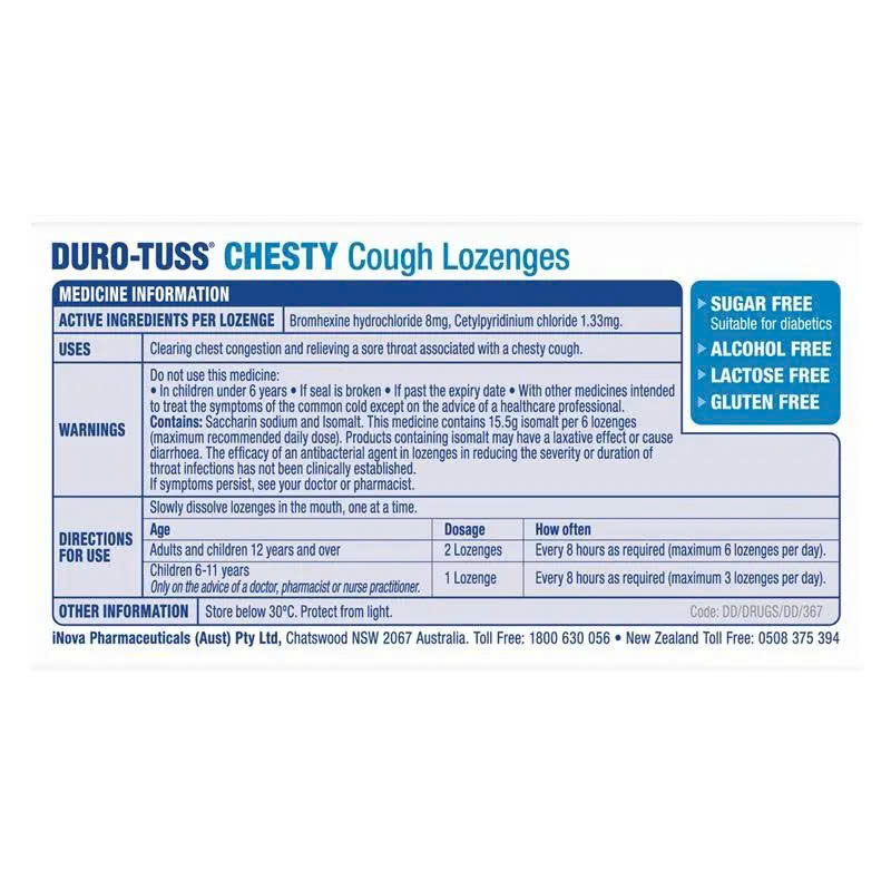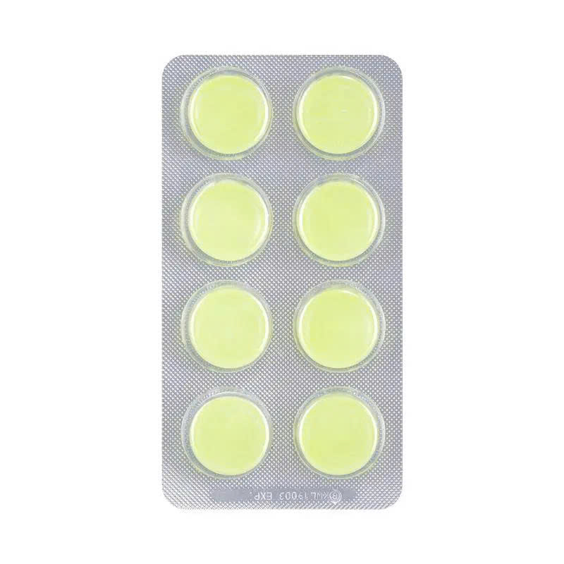 Bromhexine hydrochloride 8 mg mỗi viên ngậm — chất làm loãng đờm (mucolytic) giúp đờm dễ bị tống ra ngoài hơn.